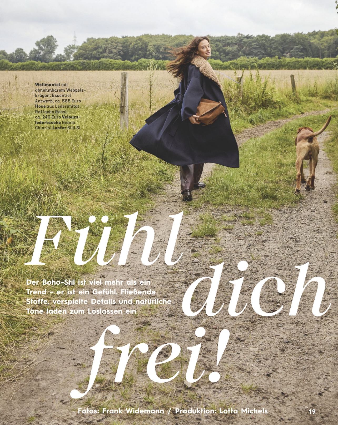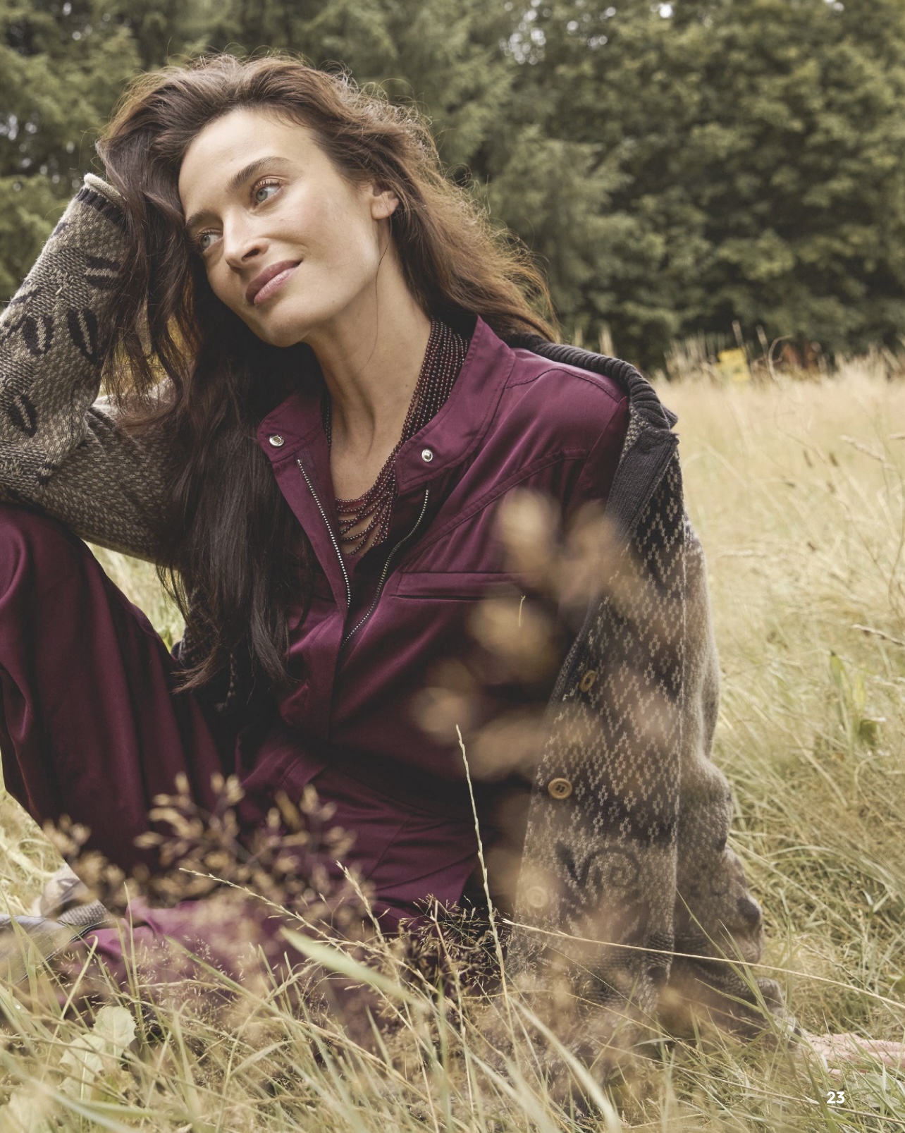 Im aktuellen herbstlichen Modeshooting der BRIGITTE (Ausgabe 21/2025) ist unser Collier „Itaklia“ aus Granat erneut im Rampenlicht.