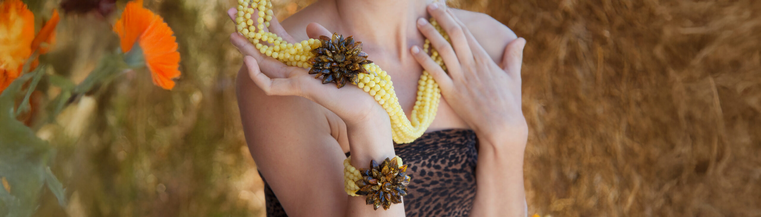We work with pearls, shells, coral and gemstones. The focus is on the special colors and structures of these materials: gentle pearl luster, warm coral red, shimmering mother-of-pearl, expressive stones. Each unique piece is harmoniously composed and finely crafted.