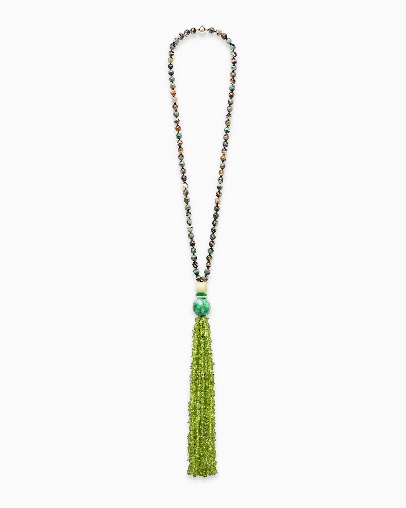 Jedes Schmuckstück wird in Handarbeit individuell gefertigt und in Italien hergestellt. MAGGIORE kombiniert Achat, Calcit und eine Peridot-Tassel, mit einem Verschluss aus Sterlingsilber mit 18 Karat Vergoldung. Auch in Gelb- oder Weißgold erhältlich (Preis auf Anfrage); Ihre Wünsche können Sie im Bestellvorgang vermerken. :contentReference[oaicite:3]{index=3}